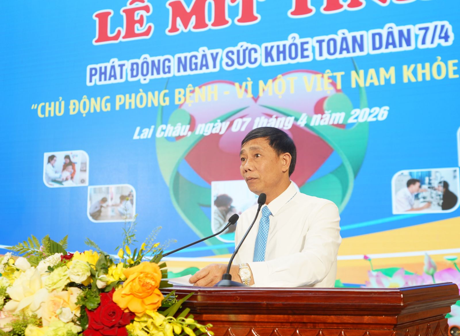 Phát biểu tại Lễ mít tinh, đồng chí Tống Thanh Hải - Ủy viên Ban Thường vụ Tỉnh ủy, Phó Chủ tịch Thường trực UBND tỉnh nhấn mạnh: Sức khỏe là vốn quý nhất của mỗi con người và toàn xã hội. Để xây dựng một cộng đồng khỏe mạnh, đồng chí Phó Chủ tịch Thường trực UBND tỉnh kêu gọi mỗi người dân hãy chủ động chăm sóc sức khỏe bản thân và gia đình; thực hiện lối sống khoa học, ăn uống hợp lý, tăng cường vận động thể lực, hạn chế sử dụng rượu bia, thuốc lá; tham gia khám sức khỏe định kỳ, tiêm chủng đầy đủ; giữ gìn môi trường sống xanh, sạch, đẹp; tích cực tham gia các hoạt động thể dục thể thao và các phong trào nâng cao sức khỏe cộng đồng. Đối với các cấp, các ngành và địa phương cần tiếp tục đẩy mạnh công tác tuyên truyền, giáo dục sức khỏe; nâng cao chất lượng dịch vụ y tế, đặc biệt là y tế cơ sở; chủ động phòng, chống dịch bệnh. Quan tâm đầu tư nguồn lực cho công tác chăm sóc sức khỏe Nhân dân, bảo đảm mọi người dân đều được tiếp cận các dịch vụ y tế thiết yếu một cách thuận lợi, công bằng và hiệu quả.