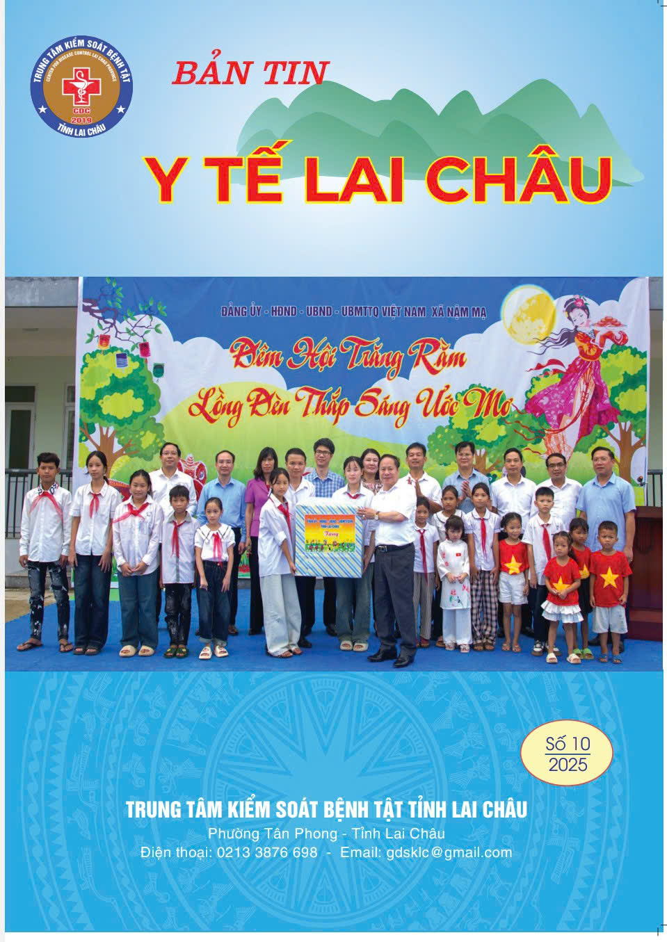 Thứ 4, 15/10/2025 | 09:20 A- A A+ | Bản tin Y tế số 10/2025 Ban_tin_Y_te_Lai_Chau_So_10_-2025_05c3cbd18e.pdf Đọc bài Lưu Bản tin Y tế số 10/2025 Tập tin đính kèm Tác giả: Nhóm P.V Nguồn:Trung tâm Kiểm soát bệnh tật tỉnh Lai Châu Copy link Tổng số điểm của bài viết là: 0 trong 0 đánh giá Click để đánh giá bài viết TIN KHÁC Bản tin Y tế số 8/2025 Hội nghị công bố Quyết định chuyển giao các Trạm Y tế xã, phường thuộc các Trung tâm Y tế trực thuộc Sở Y tế về UBND các xã, phường quản lý Lai Châu: Ban hành Nghị quyết hỗ trợ nhiều hộ gia đình khó khăn đóng Bảo hiểm y tế Tặng quà cho đối tượng Bảo trợ xã hội nhân dịp chào mừng Đại hội đại biểu toàn quốc lần thứ XIV của Đảng và Tết Nguyên đán Bính Ngọ năm 2026 Tặng 188 suất quà cho các đoàn viên công đoàn Bộ Y tế triển khai nhiệm vụ trọng tâm năm 2026