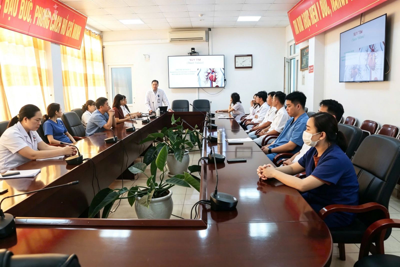 Nhằm hỗ trợ đào tạo, bồi dưỡng nâng cao trình độ chuyên môn trong lĩnh vực Ung bướu và Y học hạt nhân và các bệnh lý về tim mạch, Bệnh viện Đại học Quốc gia Hà Nội tổ chức tập huấn cho 17 bác sỹ đang công tác tại các khoa: Nội tim mạch, Nội Tổng hợp, Hồi sức cấp cứu, Hồi sức tích cực và Chống độc, Khám bệnh, Truyền nhiễm, Nhi, Nội A về suy tim.