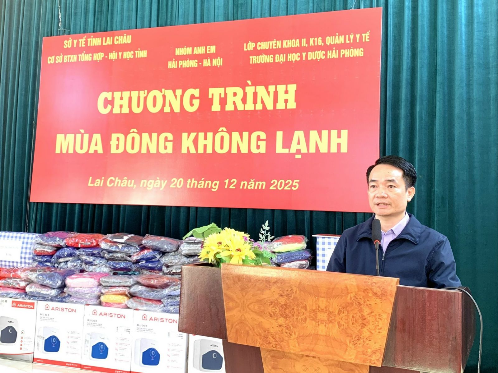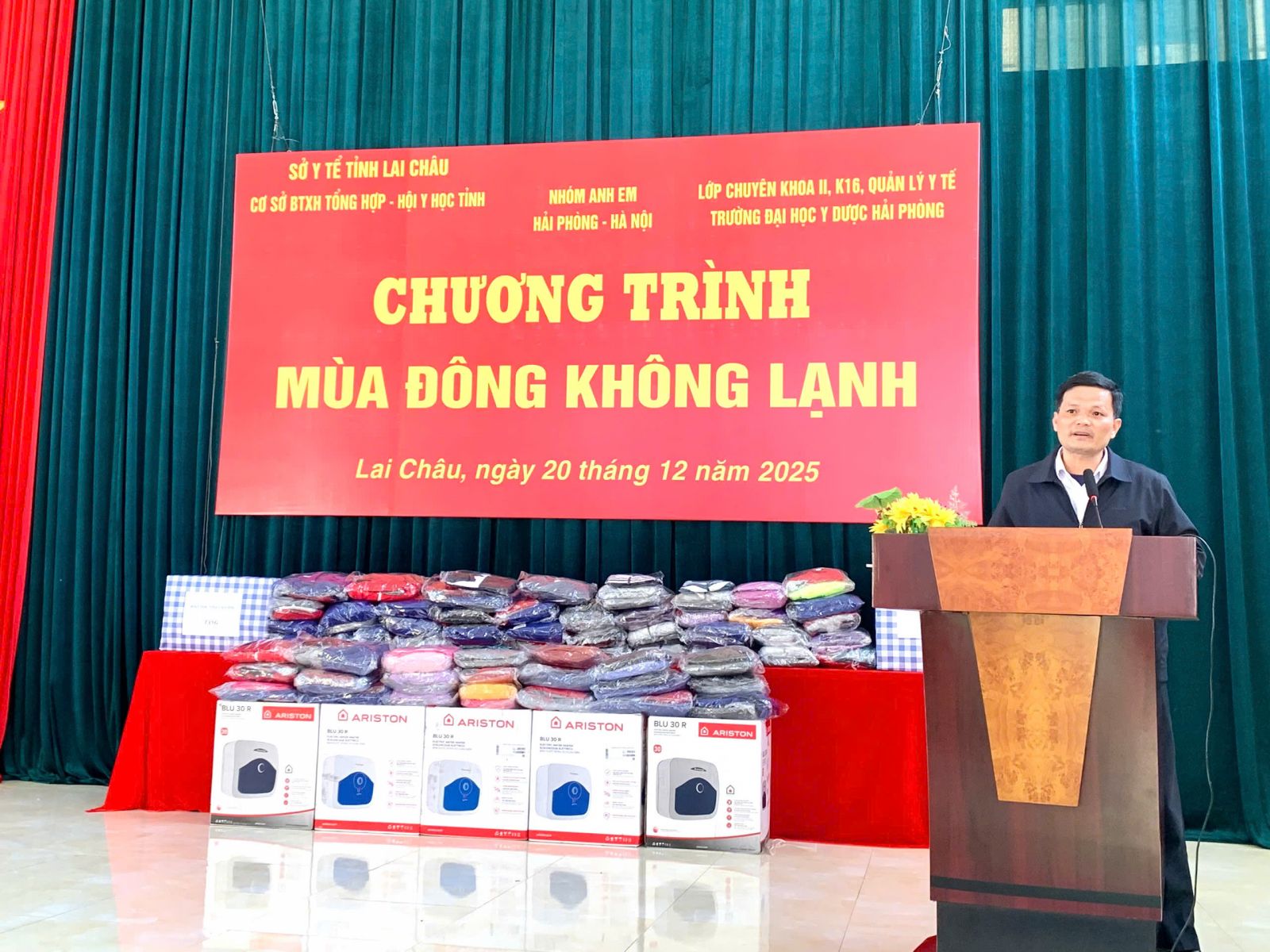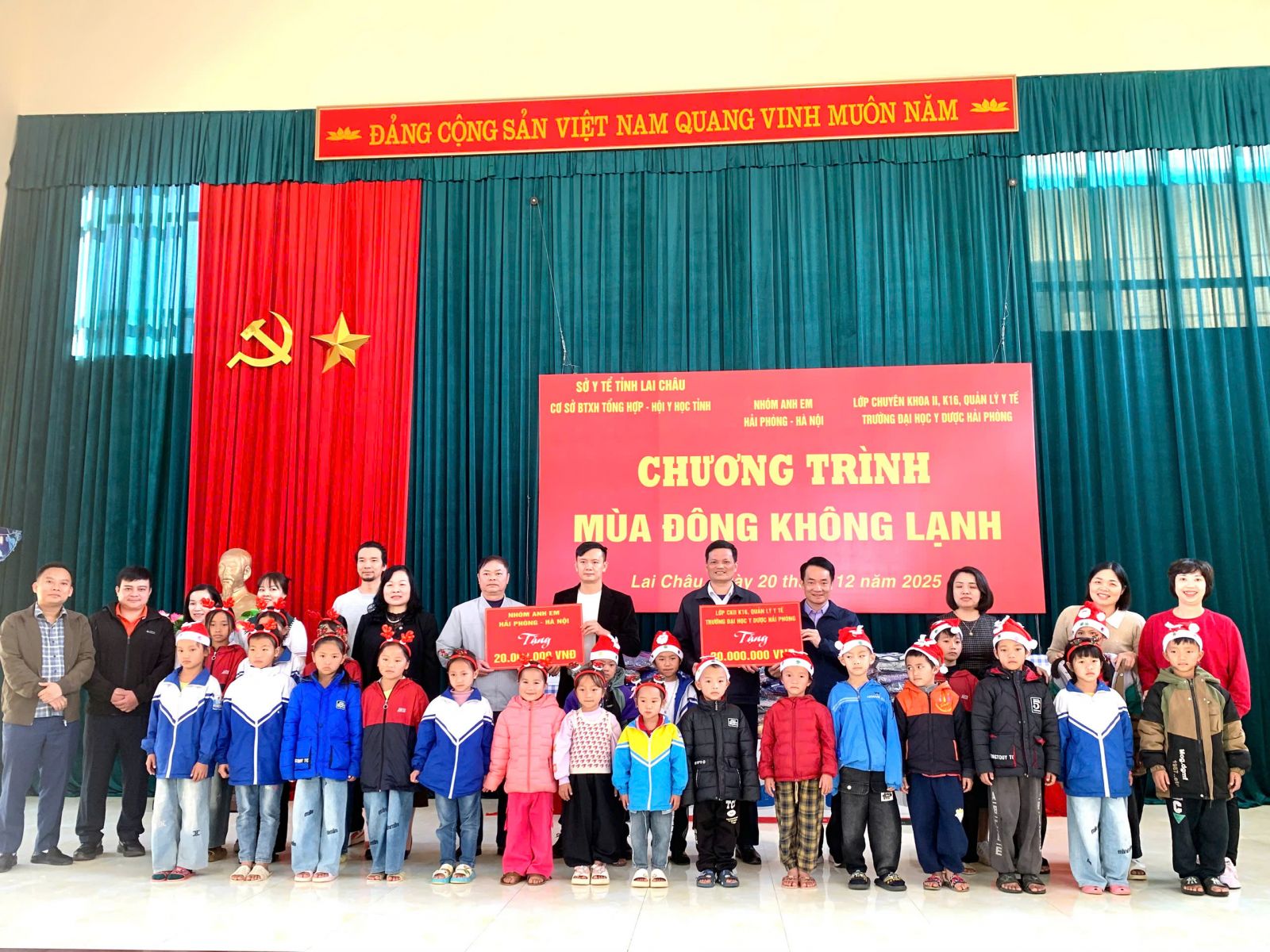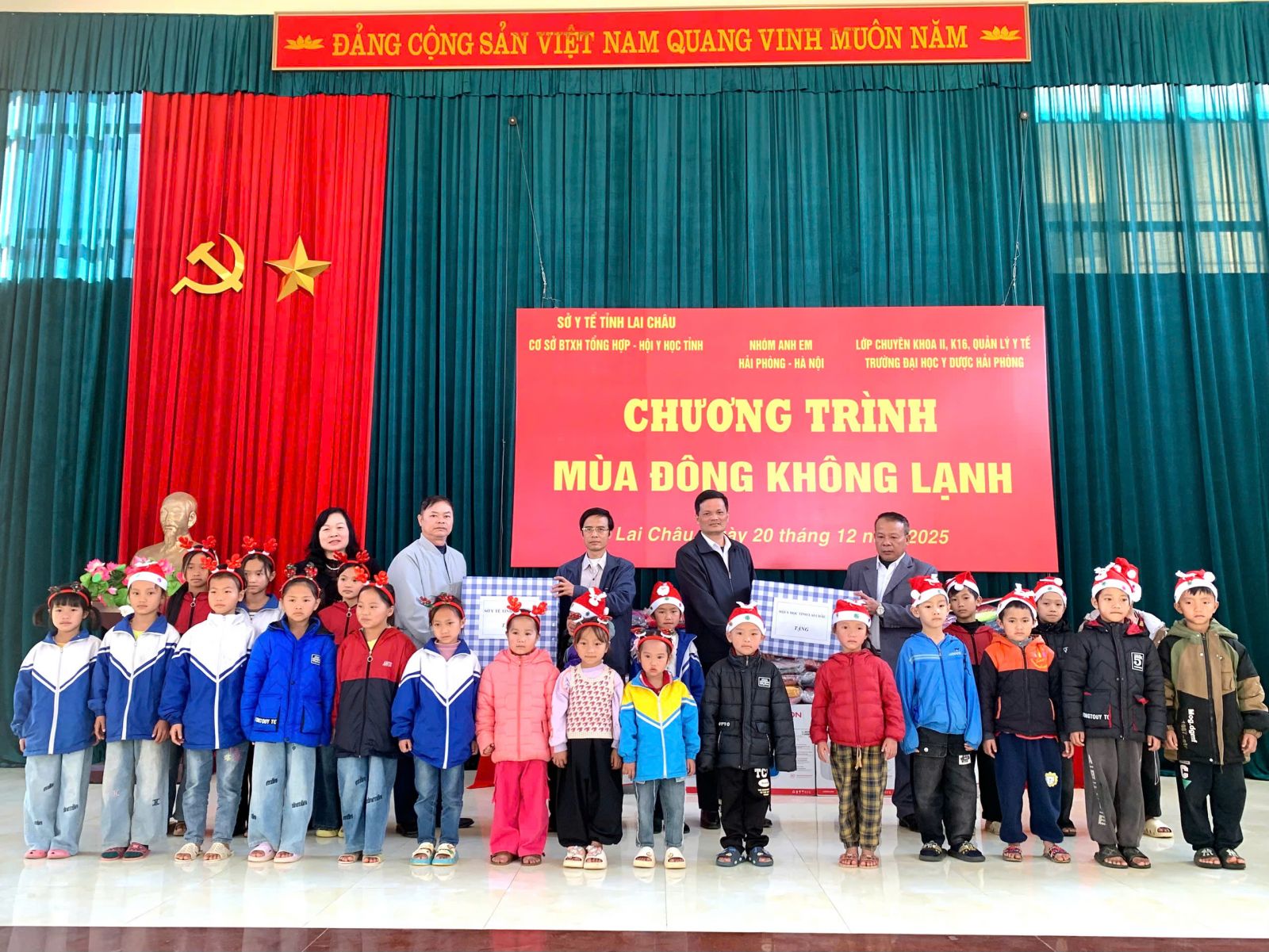 Sáng ngày 20/12, Hội Y học tỉnh Lai Châu phối hợp với Lớp Chuyên khoa II khóa 16 - Trường Đại học Y dược Hải Phòng, Nhóm anh chị em Hải Phòng - Hà Nội tổ chức Chương trình Mùa đông không lạnh cho các đối tượng đang được nuôi dưỡng tại Cơ sở Bảo trợ xã hội tổng hợp tỉnh. Dự Chương trình có BSCKII, Phạm Mạnh Hùng - Phó Chủ tịch Hội Y học tỉnh - Giám đốc Bệnh viện Phổi, BSCKI, Phạm Huỳnh Kháng - Trưởng Phòng Nghiệp vụ - Y Sở Y tế, BSCKII, Lê Hồng Sơn - Phó Giám đốc Bệnh viện Mắt Hải Phòng, Trưởng đoàn cùng các nhà hảo tâm.