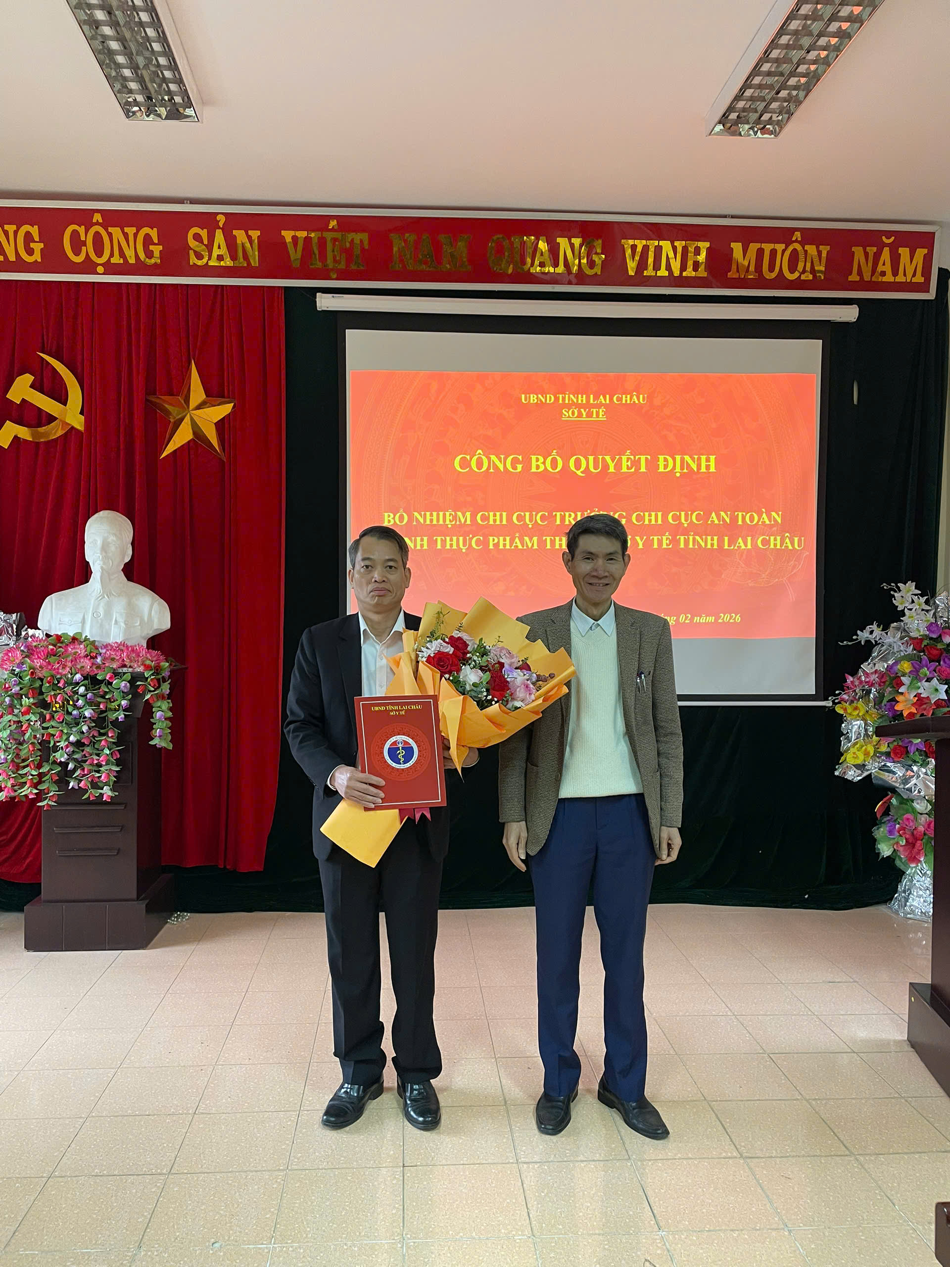 Theo đó, tại Quyết định số 250/ QĐ-UBND ngày 09/02/2026 của Chủ tịch UBND tỉnh Lai Châu Quyết định bổ nhiệm ông Vũ Hữu Tiến, Phó Chi cục trưởng Chi cục An toàn vệ sinh thực phẩm giữ chức vụ Chi cục trưởng Chi cục An toàn vệ sinh thực phẩm thuộc Sở Y tế từ ngày 10/02/2026, thời hạn bổ nhiệm là 05 năm.