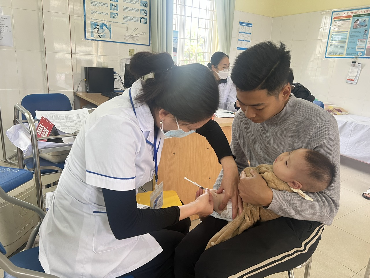 Cán bộ Trạm Y tế phường Tân Phong tiêm vắc xin phòng bệnh cho trẻ em