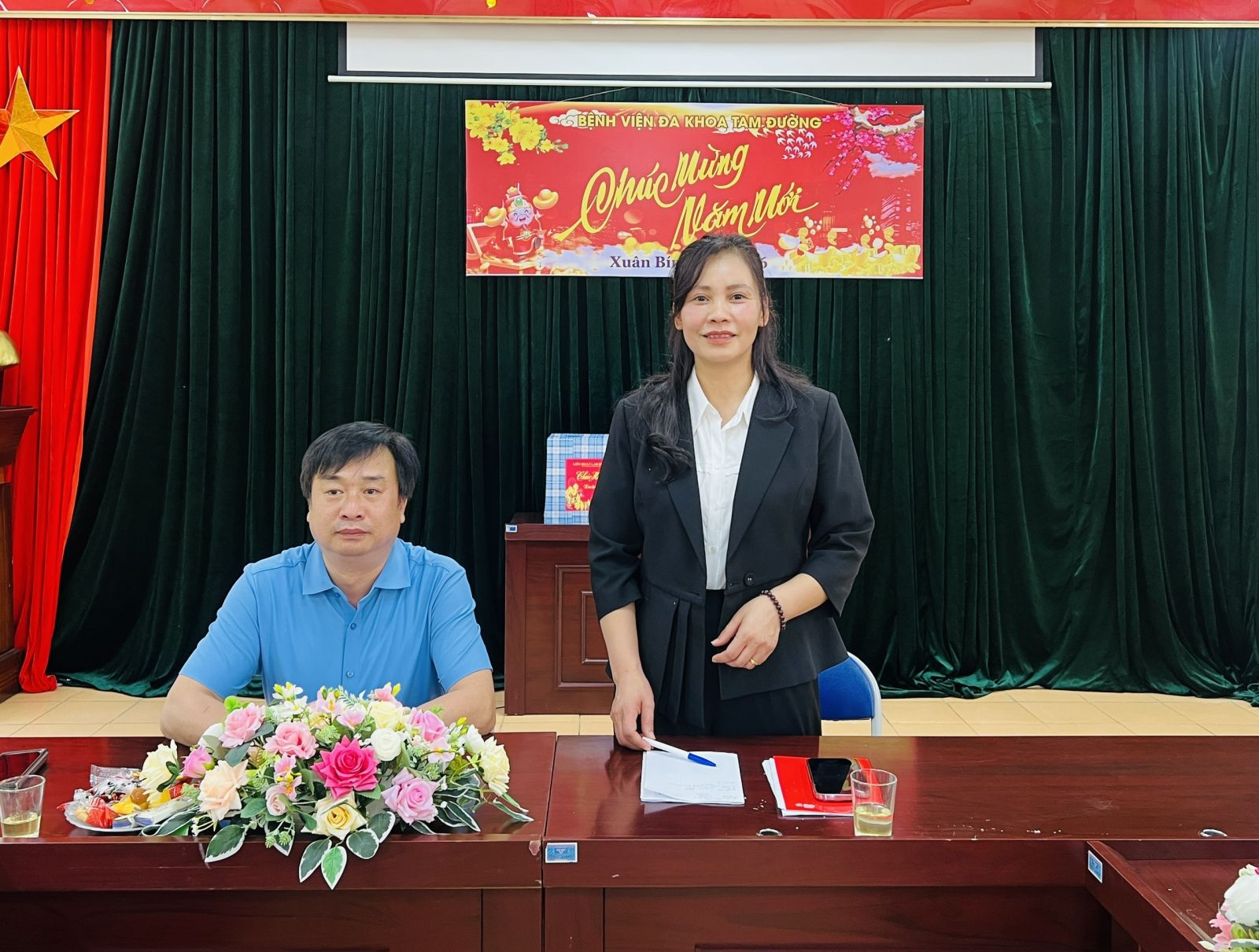 Đồng chí Phó Giám đốc biểu dương và ghi nhận kết quả đạt được của của các đơn vị trong năm qua, đồng thời, đồng chí cũng đề nghị Ban Giám đốc quan tâm sát sao trong công tác lãnh đạo, chỉ đạo: Xây dựng kế hoạch đảm bảo công tác Y tế, cấp cứu, khám chữa bệnh, chăm sóc sức khoẻ nhân dân, an ninh trật tự, an toàn thực phẩm, phòng chống cháy nổ trong dịp tết Nguyên Đán. Đảm bảo các điều kiện về nhân lực, thuốc, dịch truyền, vật tư, hóa chất, trang thiết bị, phương tiện để thực hiện công tác sơ, cấp cứu. Đặc biệt, hỗ trợ về chuyên môn cho các trạm y tế xã sau khi sáp nhập thực hiện chính quyền địa phương 2 cấp...