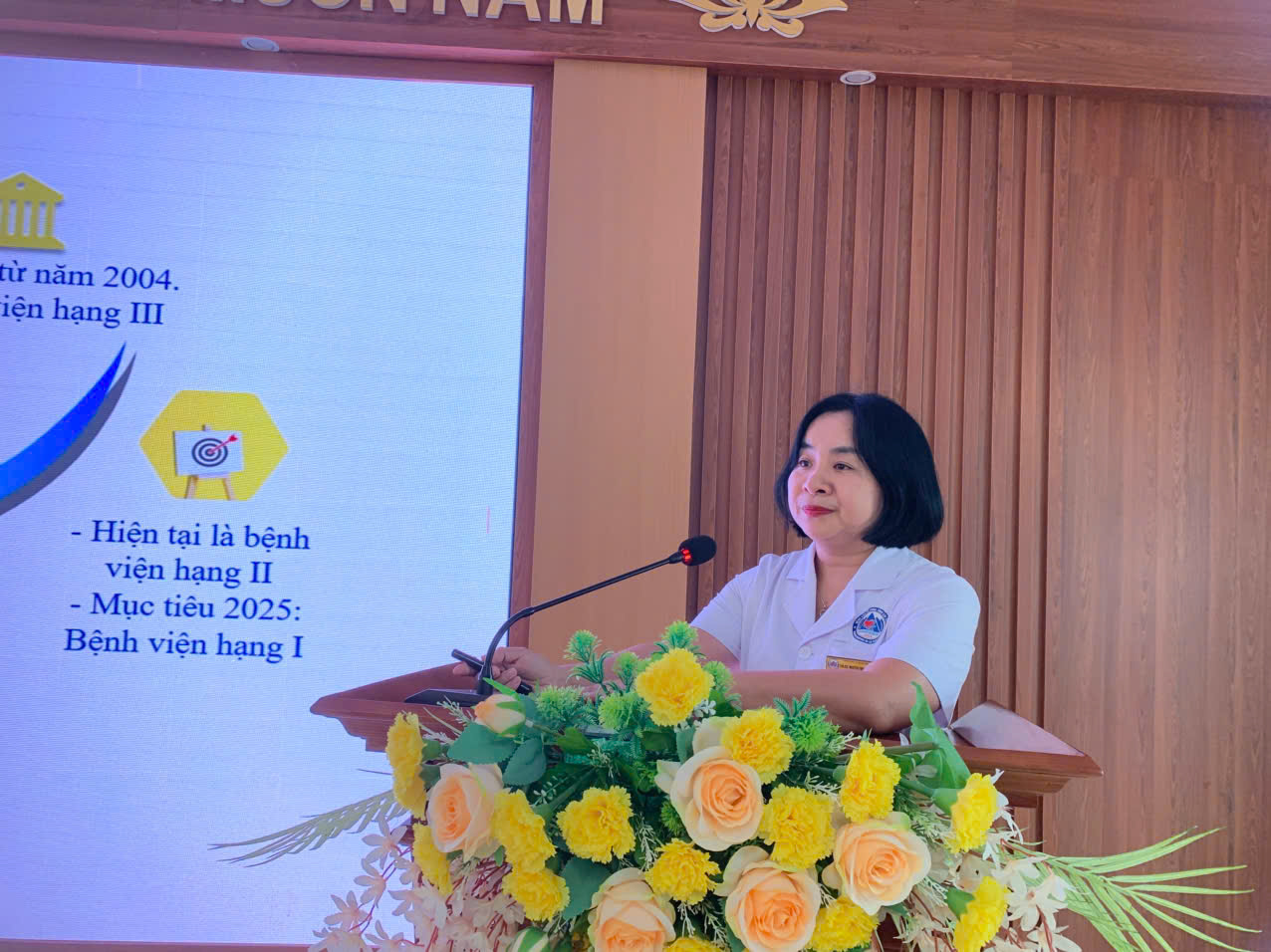 Ths, BS Nguyễn Thanh Thuỷ - Phó giám đốc Bệnh viện Đa khoa tỉnh Lai Châu báo cáo công tác chuyên môn với đàn công tác