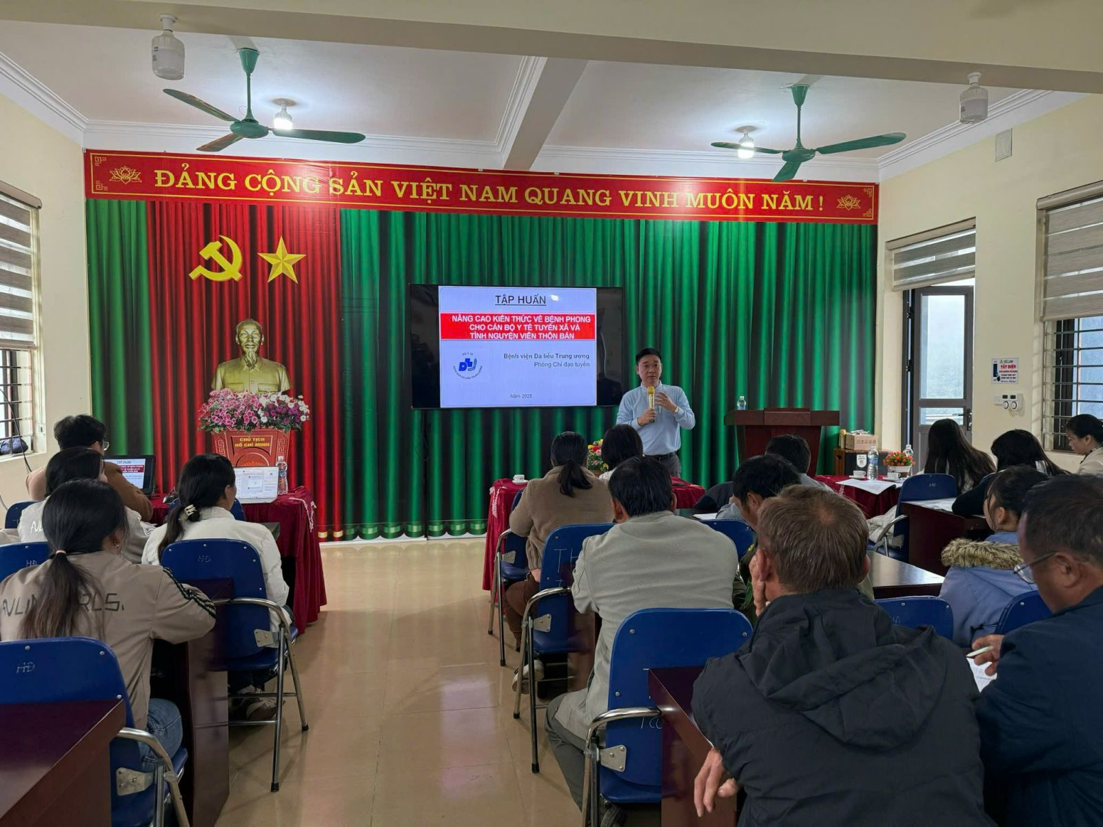 Giảng viên Bệnh viện Da liễu Trung ương tập huấn cho y tế bản, cộng tác viên xã Tả Lèng