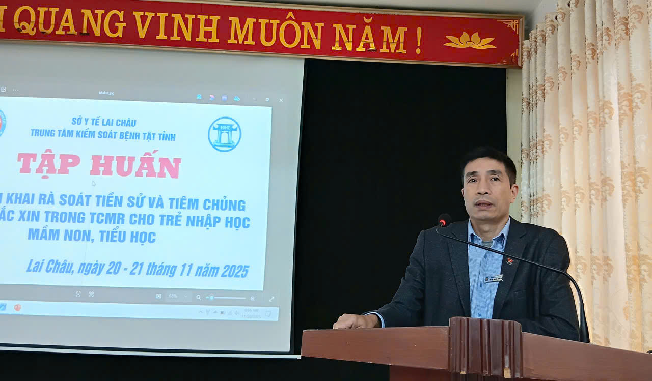 Trong 2 ngày 20 - 21/11, Trung tâm Kiểm soát bệnh tật phối hợp với Viện Vệ sinh dịch tễ Trung ương, tổ chức lớp Tập huấn về triển khai rà soát tiền sử và tiêm chủng bù liều vắc xin trong TCMR cho trẻ nhập học mầm non, tiểu học trên địa bàn tỉnh Lai Châu, cho 29 học viên là cán bộ lãnh đạo đơn vị, lãnh đạo khoa KSBT-HIV và cán bộ phụ trách tiêm chủng của các Trung tâm Y tế và các xã trong tỉnh.