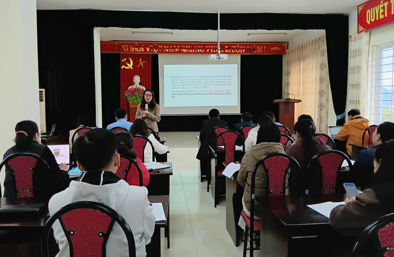 Tập huấn về triển khai rà soát tiền sử và tiêm chủng bù liều vắc xin trong TCMR cho trẻ nhập học mầm non, tiểu học