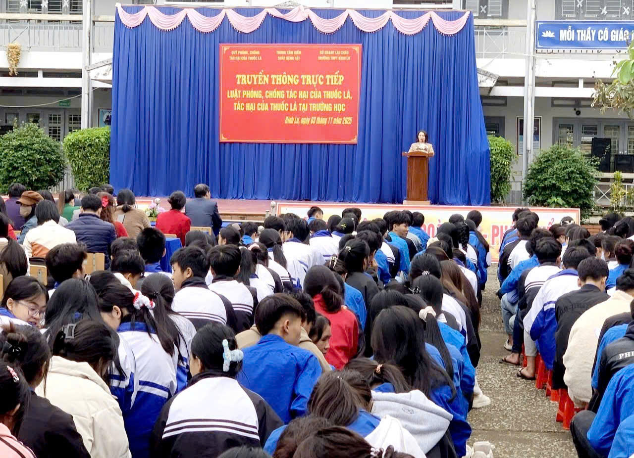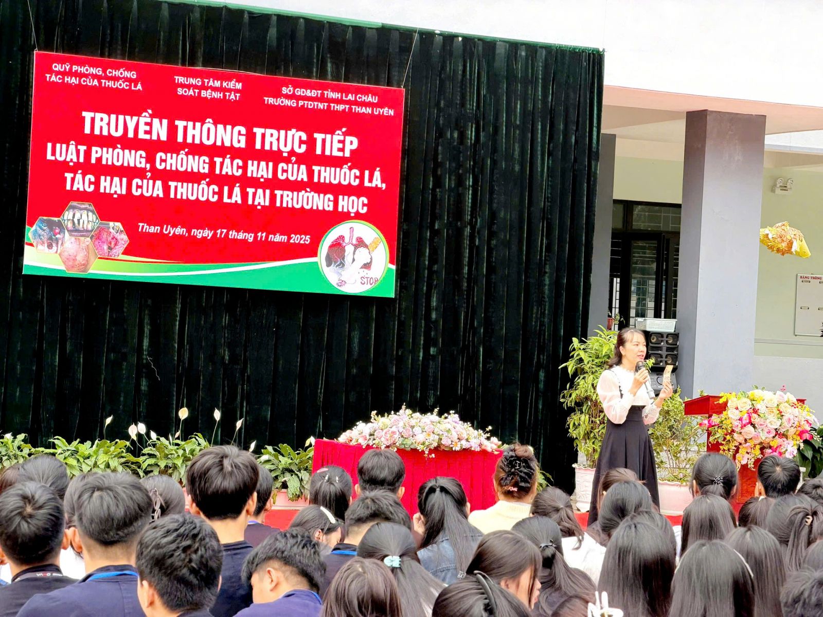 Từ ngày 27/10 - 27/11, Trung tâm Kiểm soát Bệnh tật phối hợp với các trường THPT, THCS, Tiểu học trên địa bàn tỉnh tổ chức truyền thông trực tiếp tại các Trường học về Luật phòng, chống tác hại của thuốc lá, tác hại của thuốc lá và các quy định liên quan trên địa bàn tỉnh Lai Châu năm 2025.