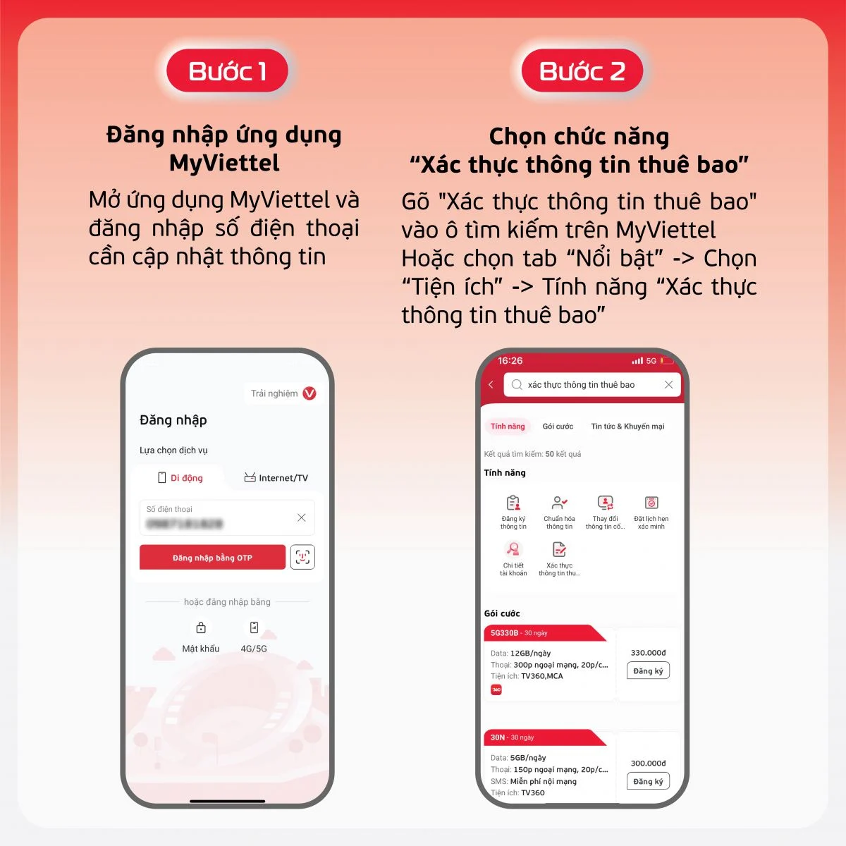 2. Đối với thuê bao đăng ký SIM di động bằng giấy tờ khác (hộ chiếu, CMND bộ đội/công an) hoặc nhận được tin nhắn thông báo mời chuẩn hóa thông tin thuê bao từ đầu số Viettel: