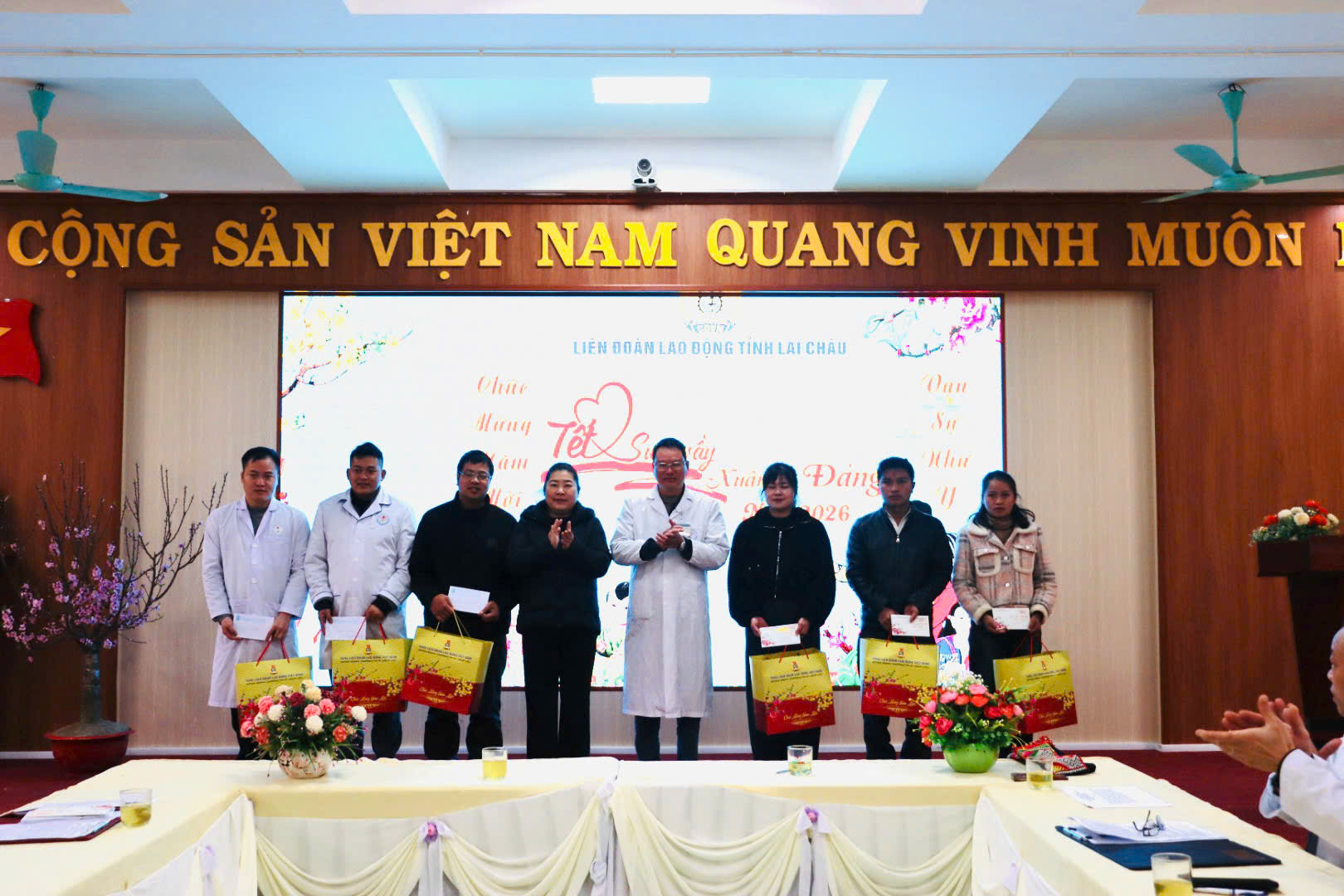 Trong không khí rộn ràng những ngày giáp Tết Nguyên đán, đoàn lãnh đạo Liên đoàn Lao động tỉnh do đồng chí Lò Thị Hằng - Phó chủ tịch LĐLĐ tỉnh đã đến thăm và trao tặng những phần quà ý nghĩa cho các cán bộ y tế có hoàn cảnh khó khăn. Những món quà thiết thực cùng lời thăm hỏi, động viên chân thành từ các đồng chí lãnh đạo không chỉ là sự hỗ trợ về vật chất, mà còn là tấm lòng trân trọng, tri ân sâu sắc. Hành động này thể hiện sự quan tâm kịp thời, sẻ chia trước những hy sinh thầm lặng của đội ngũ "chiến sĩ áo trắng" - những người đã ngày đêm cống hiến cho sự nghiệc chăm sóc sức khỏe cộng đồng. Món quà xuân như tiếp thêm hơi ấm và động lực, giúp họ vơi bớt phần nào gánh nặng để đón một cái Tết đủ đầy, ấm áp hơn, từ đó thêm vững tâm cống hiến.