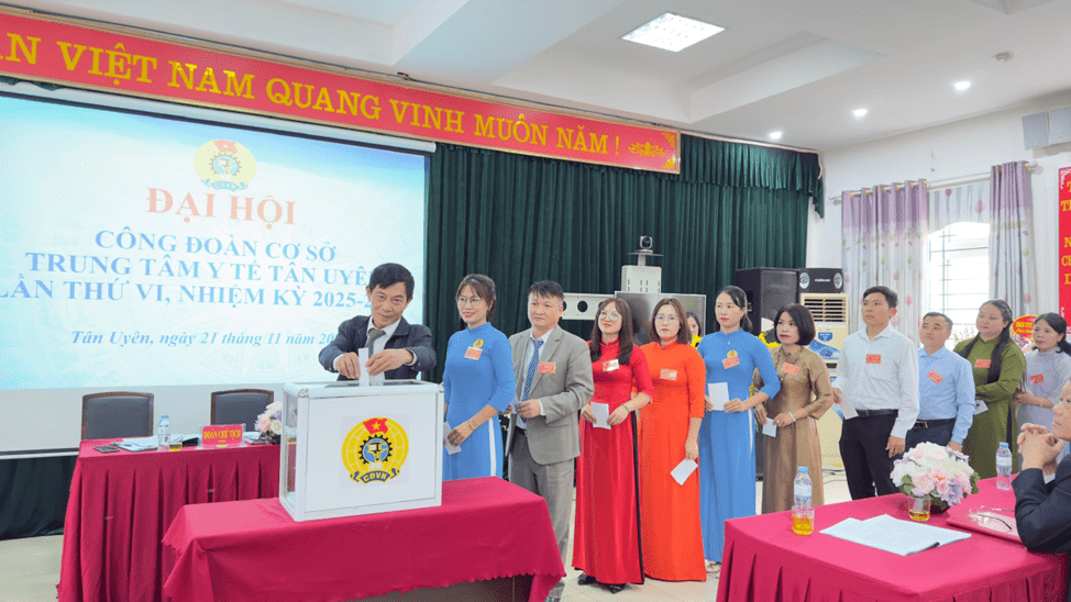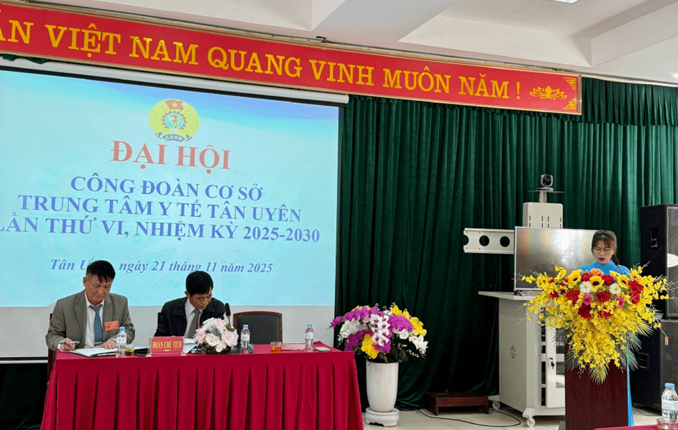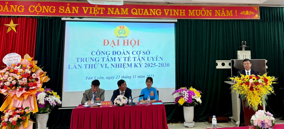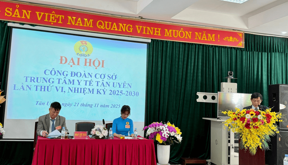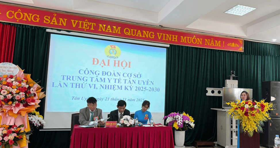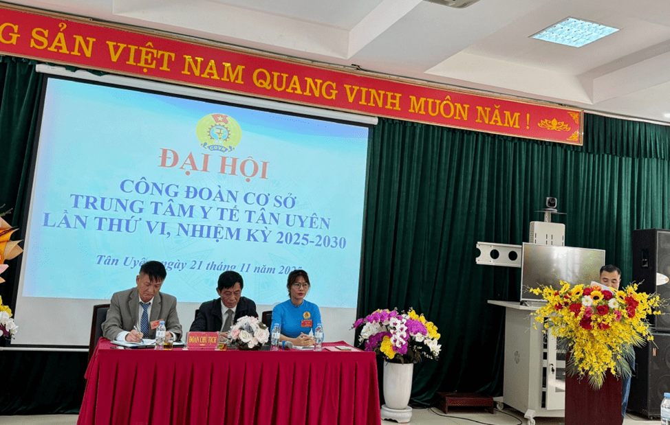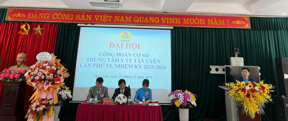 Ngày 21/11/2025, Công đoàn Cơ sở Trung tâm Y tế Tân Uyên long trọng tổ chức Đại hội lần thứ VI, nhiệm kỳ 2025-2030. Đại hội được tiến hành trong không khí trang nghiêm, đúng Điều lệ Công đoàn Việt Nam, thể hiện tinh thần “Đoàn kết - Dân chủ - Kỷ cương - Đổi mới - Phát triển”. Đây là sự kiện có ý nghĩa quan trọng, nhằm đánh giá kết quả hoạt động công đoàn trong nhiệm kỳ vừa qua và đề ra phương hướng, nhiệm vụ cho giai đoạn tiếp theo.