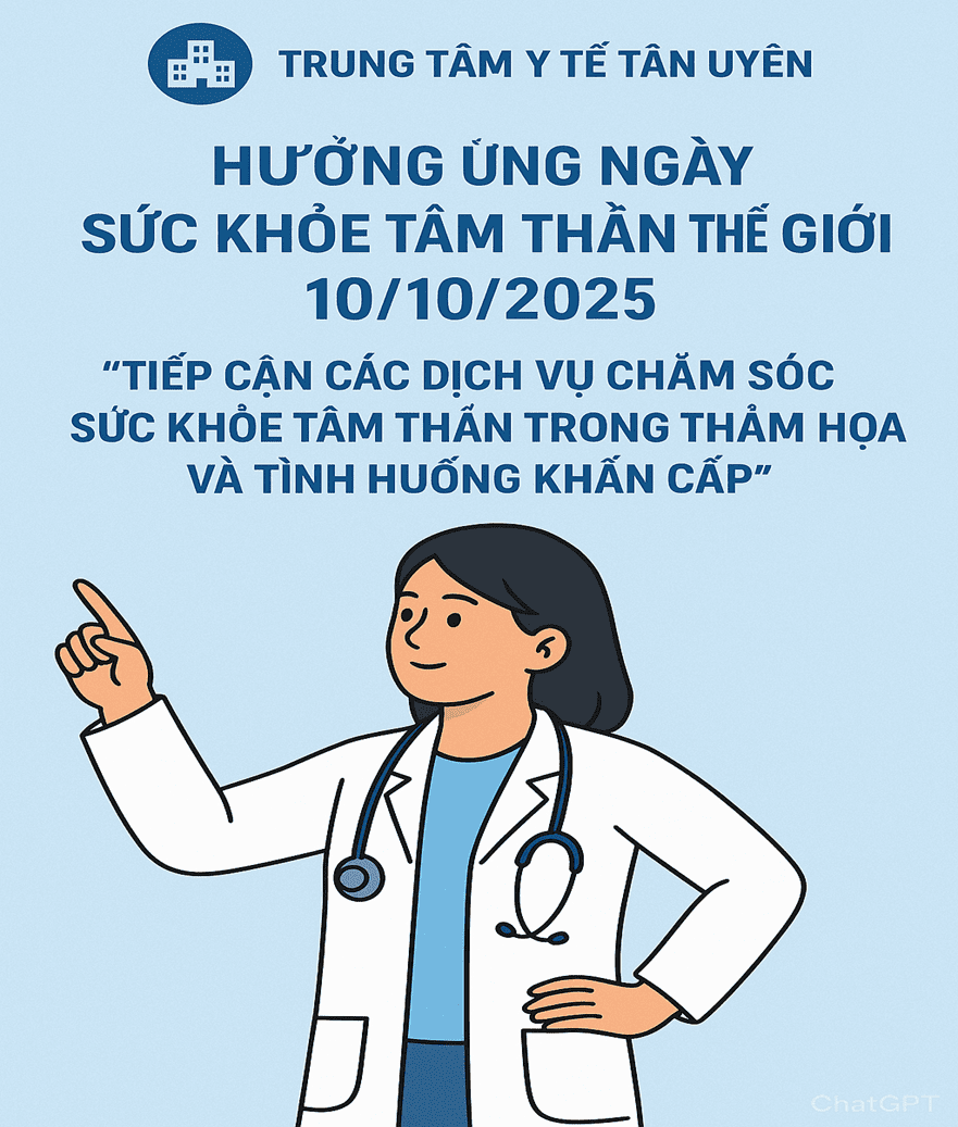 Nhân Ngày Sức khỏe Tâm thần Thế giới 10/10, Trung tâm Y tế Tân Uyên kêu gọi mỗi người dân hãy quan tâm hơn đến sức khỏe tinh thần của bản thân và những người xung quanh; hãy lắng nghe, thấu hiểu và chia sẻ - bởi một tâm hồn khỏe mạnh là nền tảng của một cuộc sống hạnh phúc và một xã hội nhân ái, bền vững.