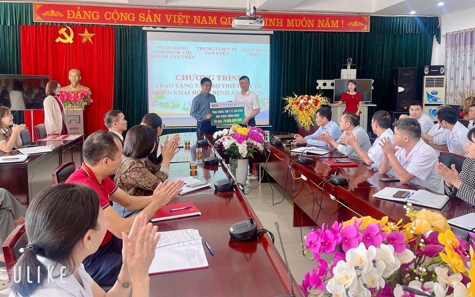 Sáng ngày 22/10/2025, Trung tâm Y tế Tân Uyên đã tổ chức buổi tiếp nhận kinh phí hỗ trợ từ hai ngân hàng Agribank và BIDV nhằm triển khai hệ thống Bệnh án điện tử trong tiến trình chuyển đổi số y tế, góp phần nâng cao chất lượng khám, chữa bệnh, tiết kiệm thời gian, chi phí và hiện đại hóa công tác quản lý hồ sơ bệnh nhân theo đúng định hướng của Bộ Y tế.