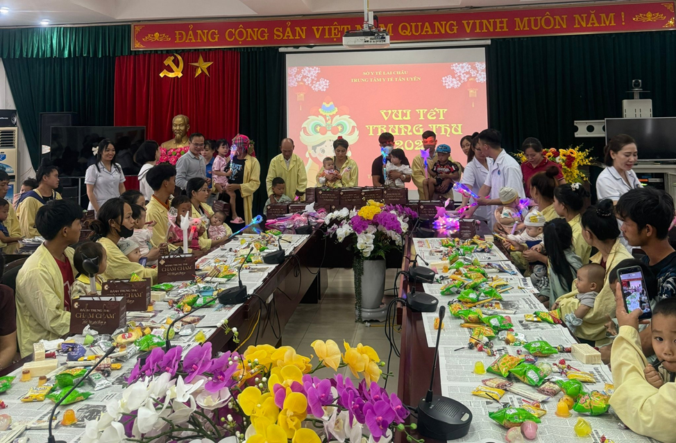 Đến dự và trực tiếp trao quà có đại diện Ban Giám đốc Trung tâm Y tế, Ban Chấp hành Công đoàn, Tổ Công tác xã hội và Đoàn Thanh niên Trung tâm Y tế Tân Uyên. Tại chương trình, đoàn đã ân cần thăm hỏi, động viên và trao 70 suất quà Trung thu đến các em nhỏ đang điều trị nội trú, giúp các em có thêm niềm vui, sự ấm áp và tiếng cười trong dịp Tết Trung thu.