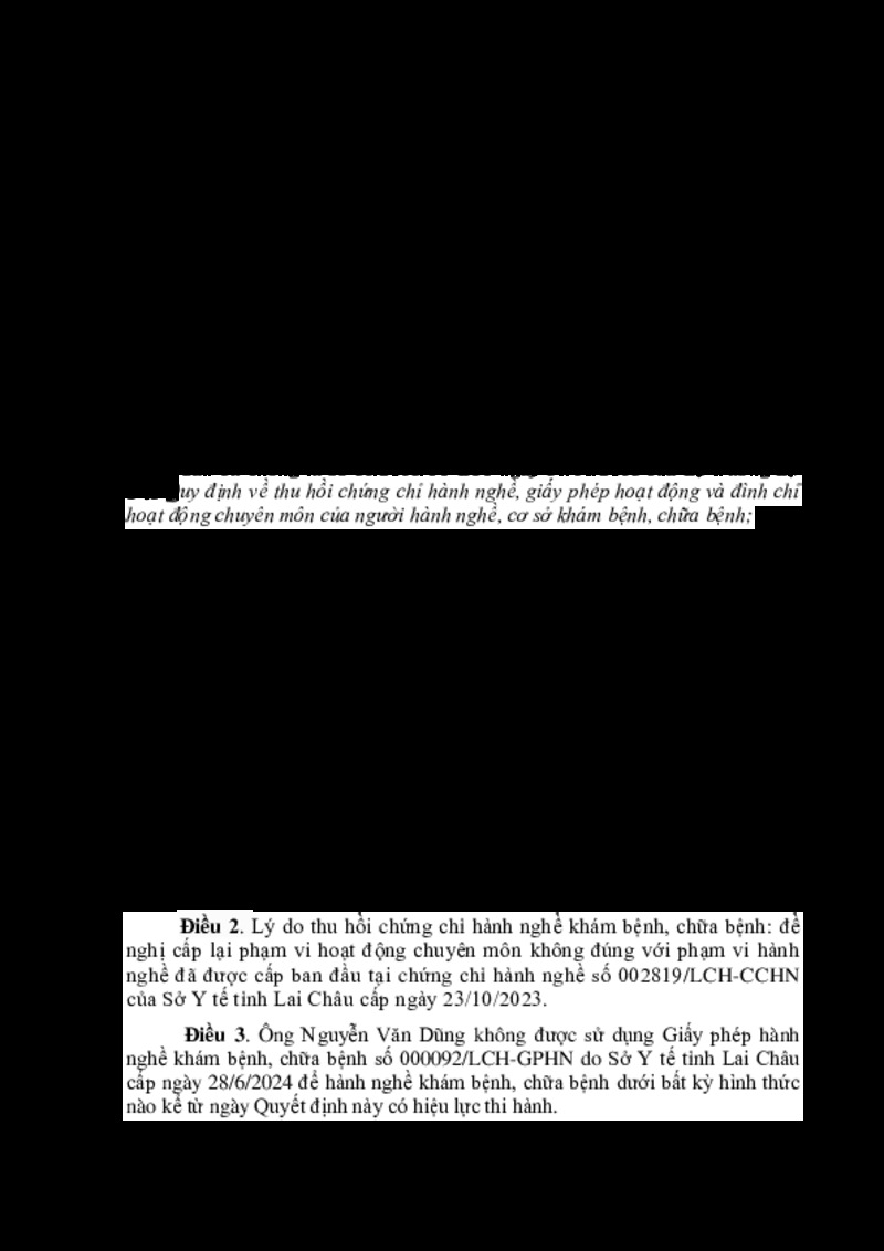 | Tiêu đề văn bản | Quyết định Thu hồi Giấy phép hành nghề khám bệnh, chữa bệnh (Nguyễn Văn Dũng) | ||